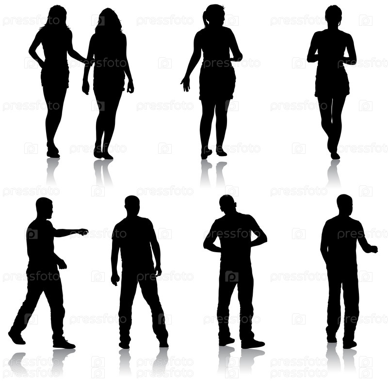 Черный силуэт группы людей, стоящих в разных позах