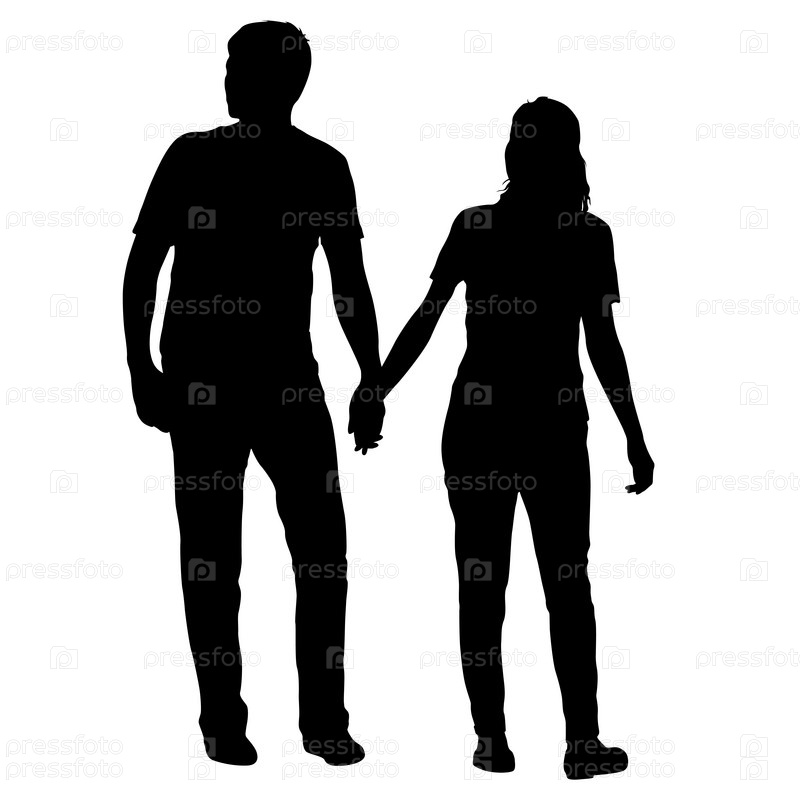 Силуэт мужчины и женщины, идущих рука об руку