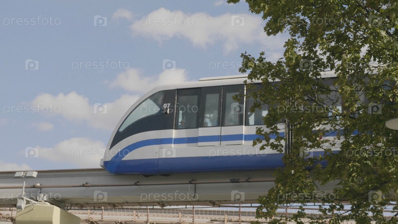 МОСКВА - 27 ИЮЛЯ: Московский транспортный трамвайный монорельс на ВДНХ 27 июля 2019 года в Москве, Россия