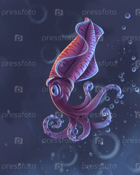 Маленький кальмар в воде