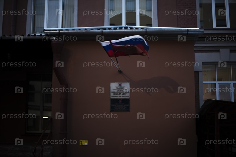 Флаги России и Санкт-Петербурга на здании школы