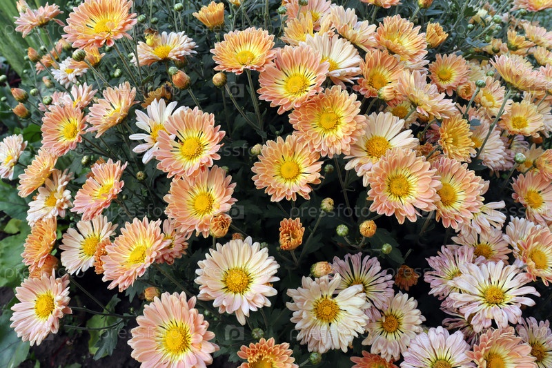 Цветущий куст корейской хризантемы в осеннем саду