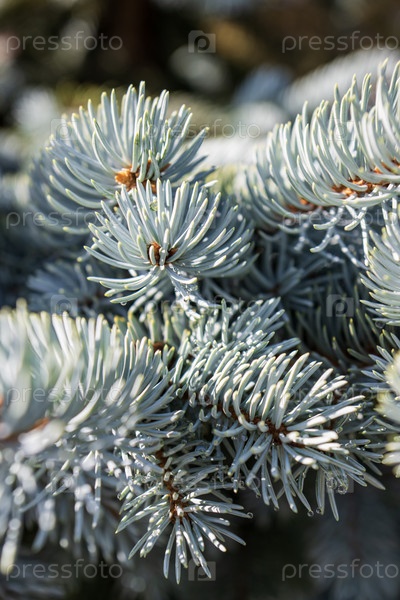 Голубые еловые ветки крупным планом