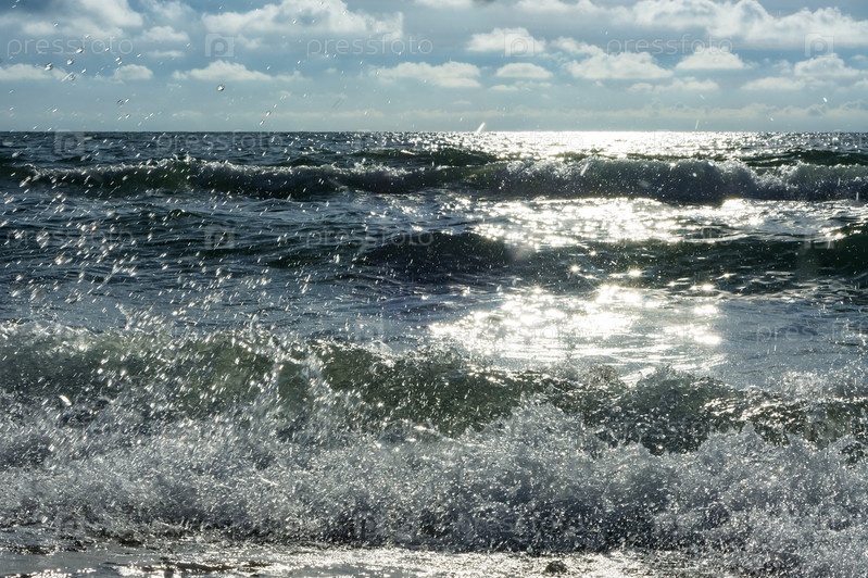 Морские волны, пасмурная погода, Балтийское море, облака в небе