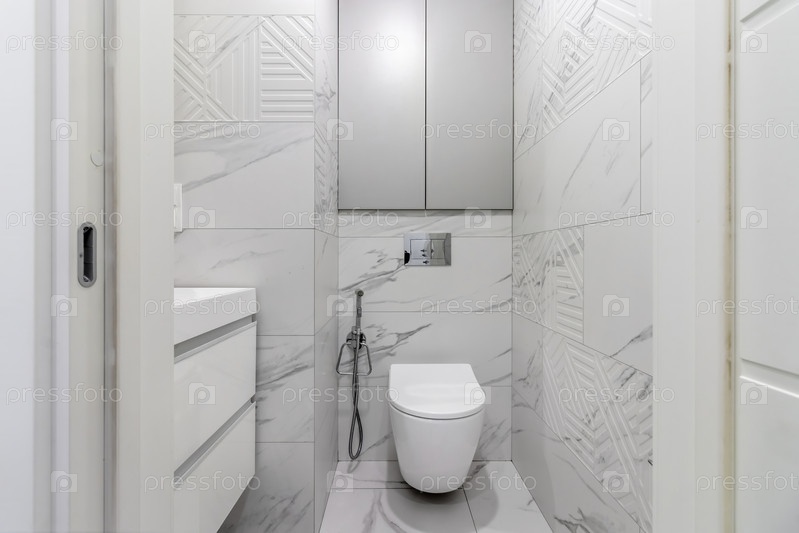 Современная ванная комната в квартире в серо-белых тонах