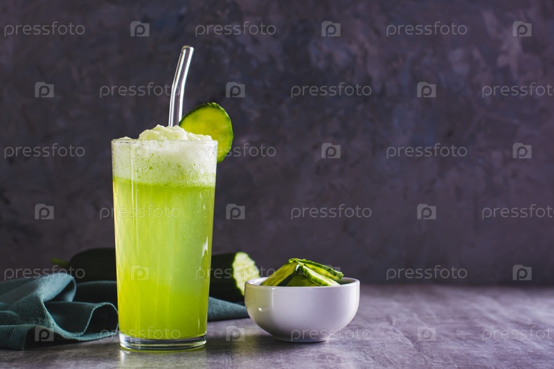 Свежий огуречный лимонад в стакане на столе