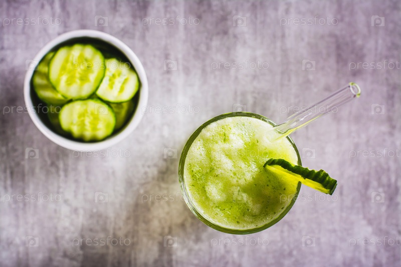 Крупный план свежего огуречного лимонада в стакане на столе