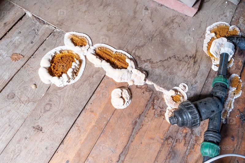 Грибок, поражающий деревянные элементы конструкций, изображение крупным планом