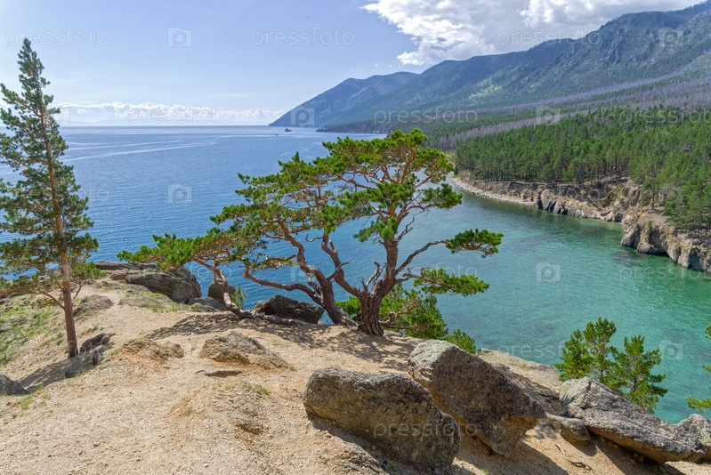 Красивые сосны над Байкалом. Малый Колокольный Мыс. Иркутская область, Россия. Август