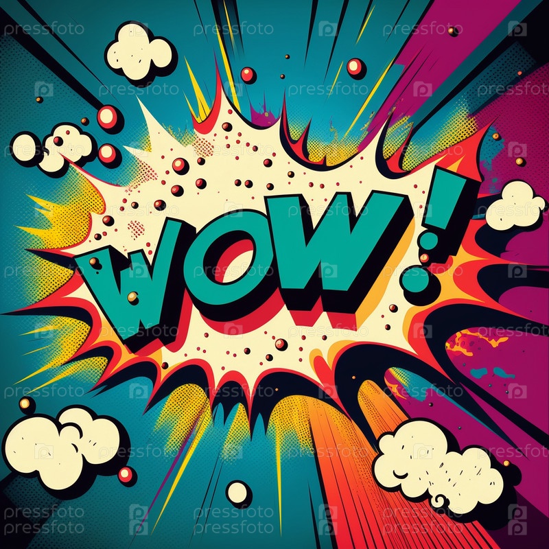 Карикатурный знак разрывающихся облаков со словом WOW