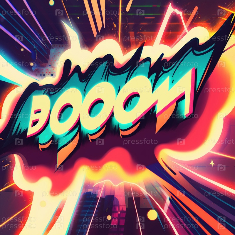 карикатурный знак разрывающихся облаков со словом Boom