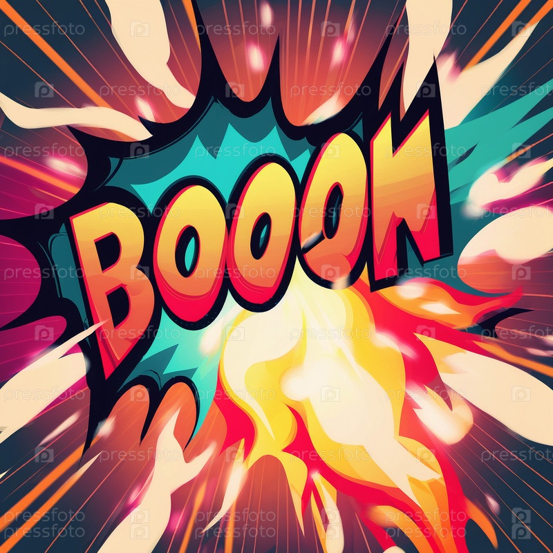 карикатурный знак разрывающихся облаков со словом Boom