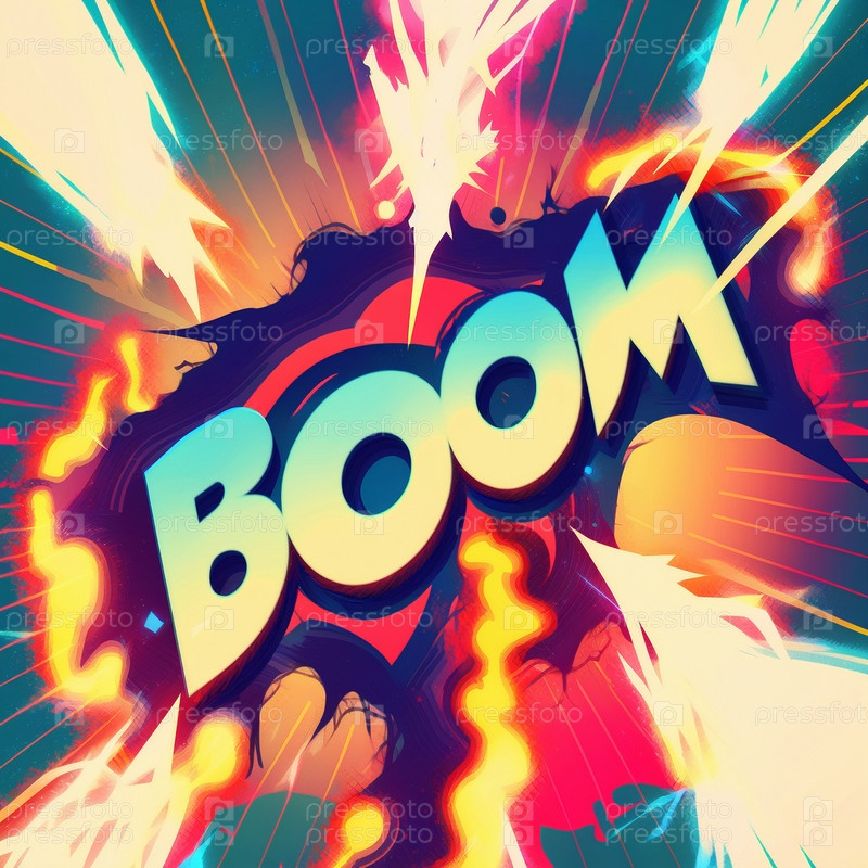 карикатурный знак разрывающихся облаков со словом Boom