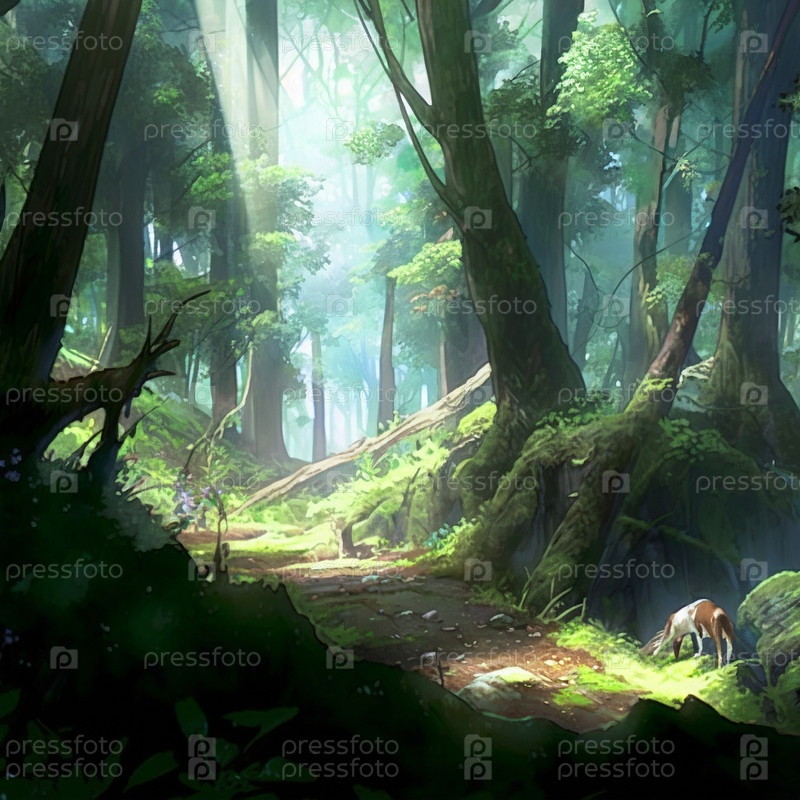 Красочное изображение леса в стиле аниме
