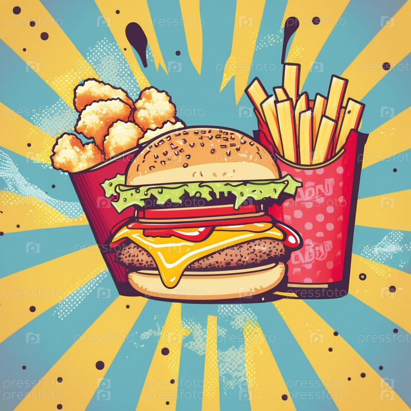 Красочная иллюстрация фаст-фуда в стиле поп-арт