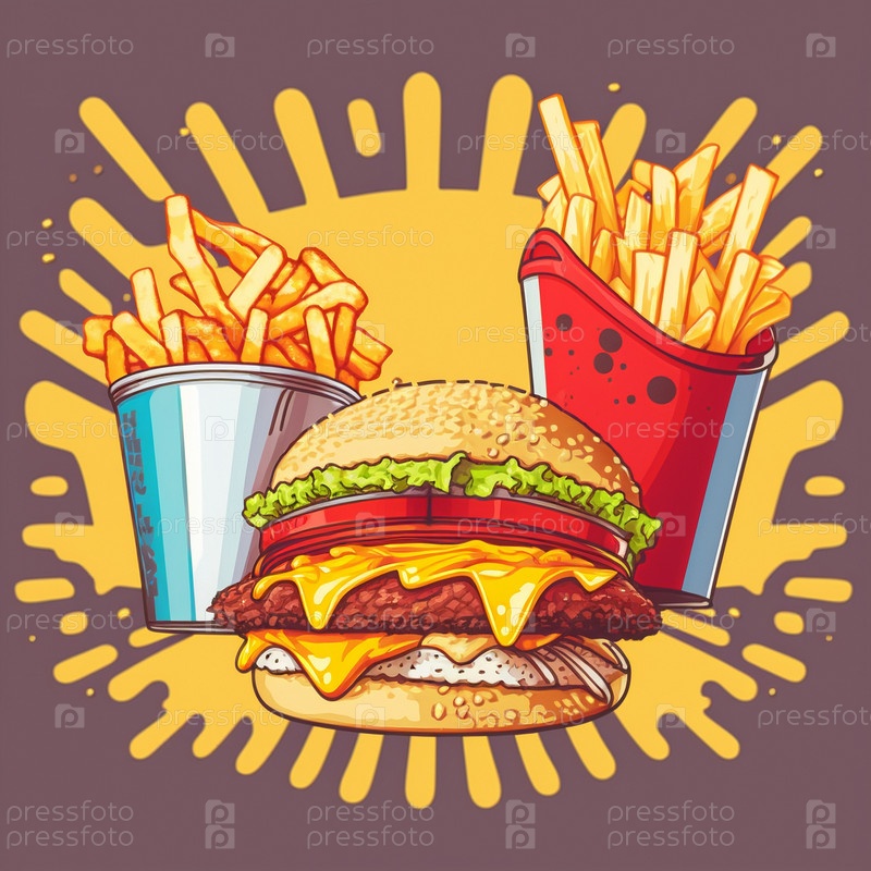 Красочная иллюстрация фаст-фуда в стиле поп-арт