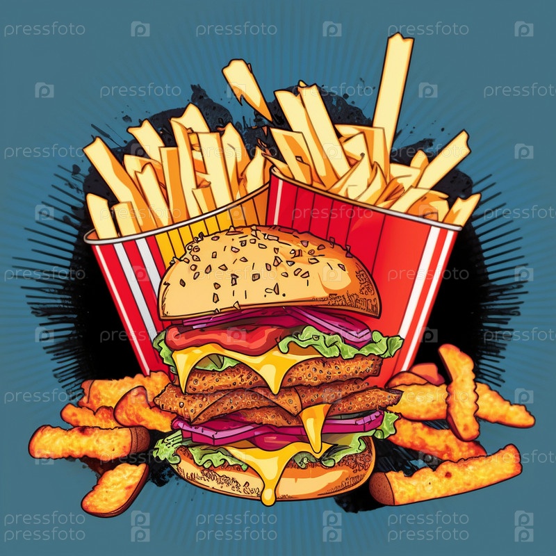 Красочная иллюстрация фаст-фуда в стиле поп-арт
