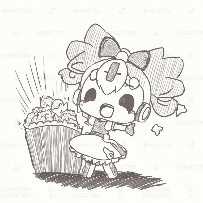 Девушка с попкорном в стиле аниме