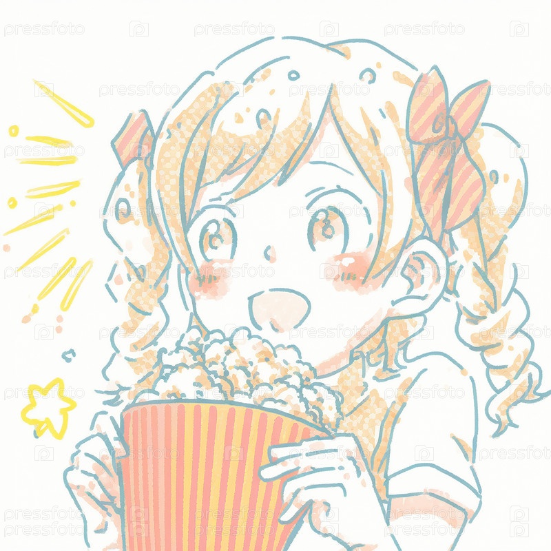 Девушка с попкорном в стиле аниме