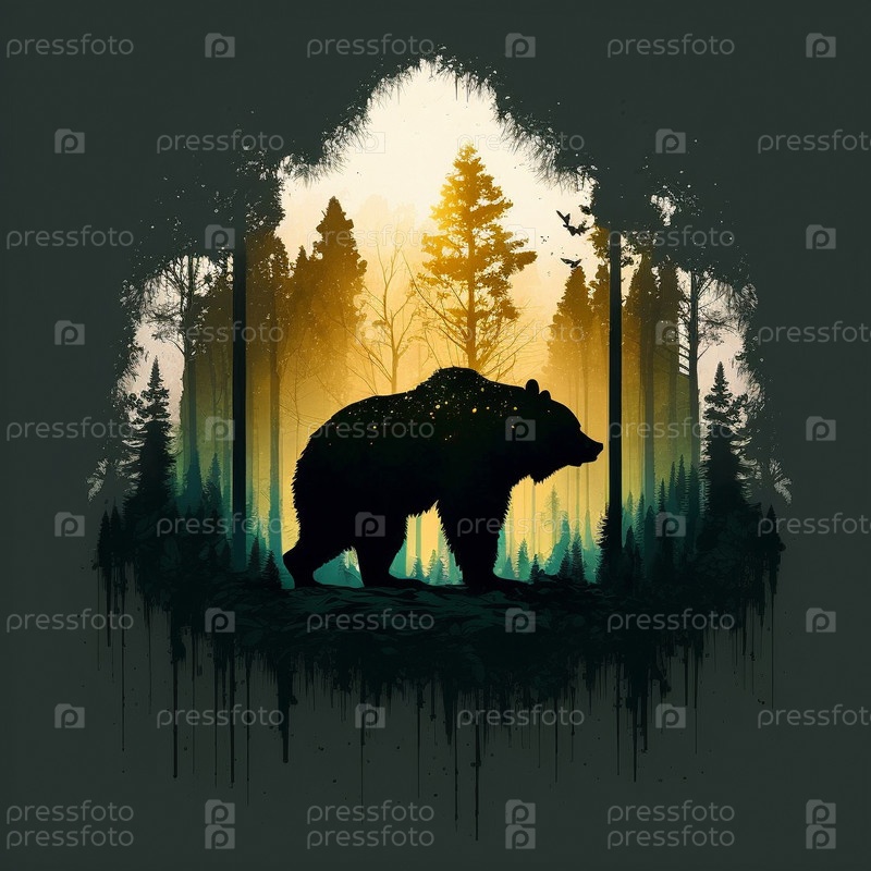 Силуэт медведя с изображением леса