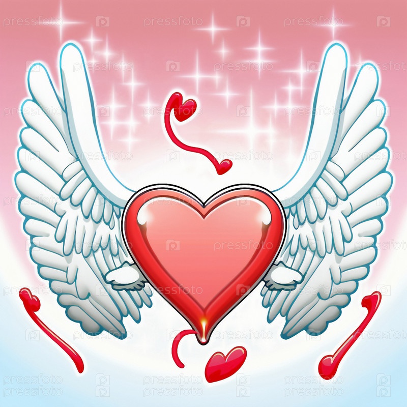 Мультяшный графический рисунок поющего сердца с крыльями