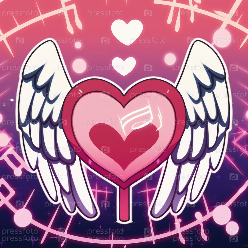 Мультяшный графический рисунок поющего сердца с крыльями