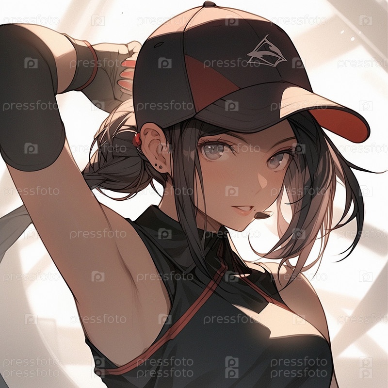 Девушка в бейсболке в стиле аниме