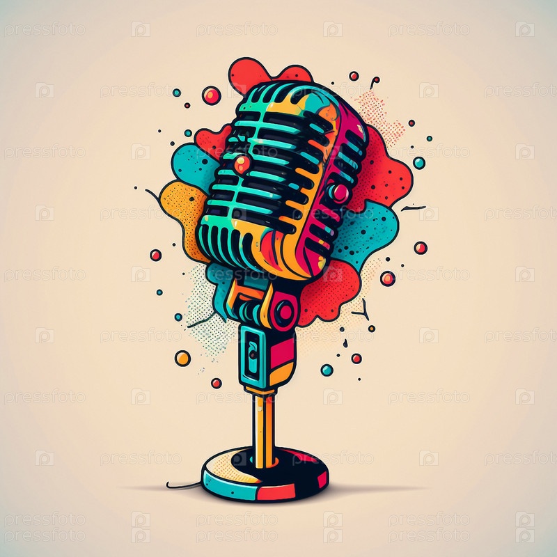 Красочная иллюстрация микрофона на подставке