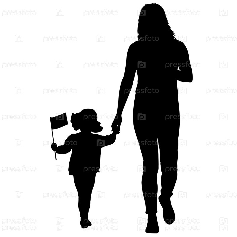 Силуэт счастливой семьи с флагом в руке на белом фоне