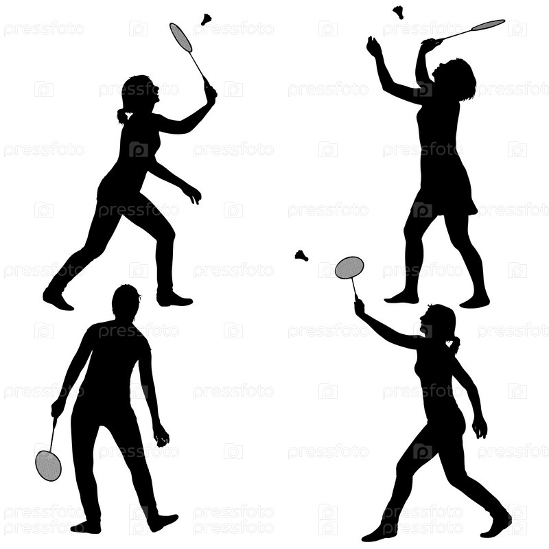 Черный силуэт бадминтонистки на белом фоне