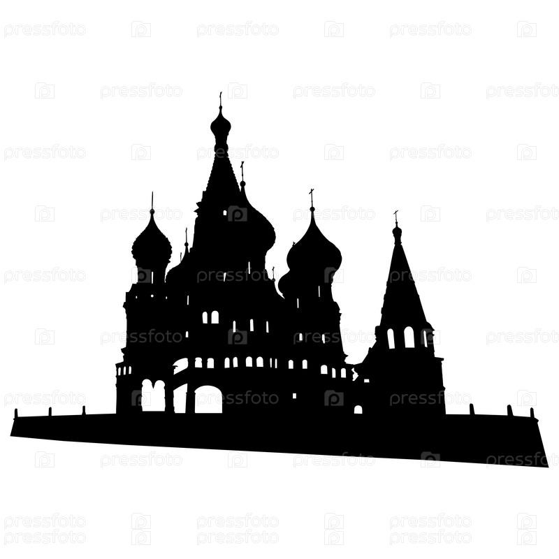 Силуэт собора Василия Блаженного в Москве на белом фоне