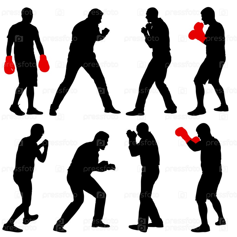 Черный силуэт спортсмена-боксера на белом фоне