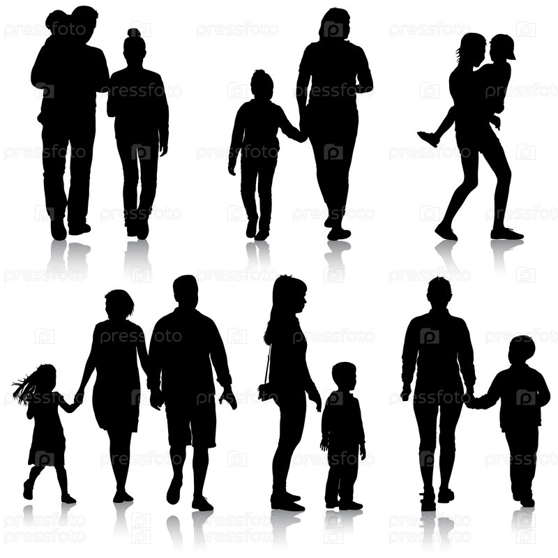 Установите силуэт счастливой семьи на белом фоне