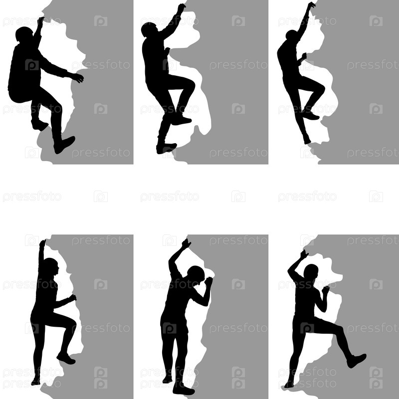 Черный силуэт скалолаза на белом фоне