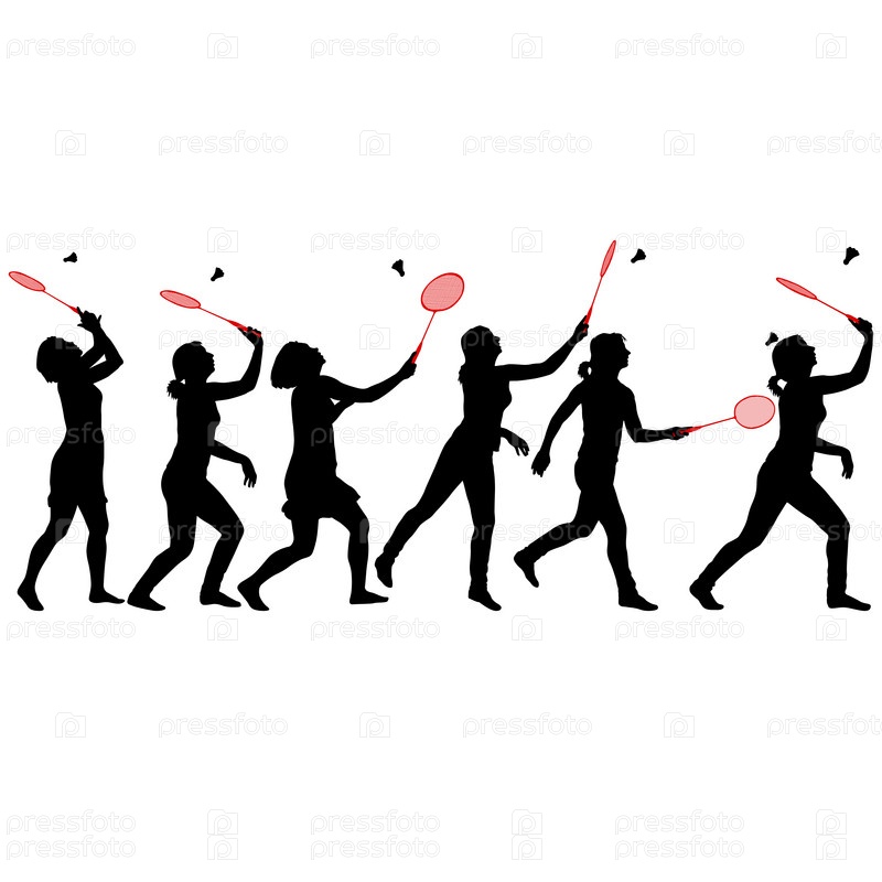 Черный силуэт бадминтонистки на белом фоне