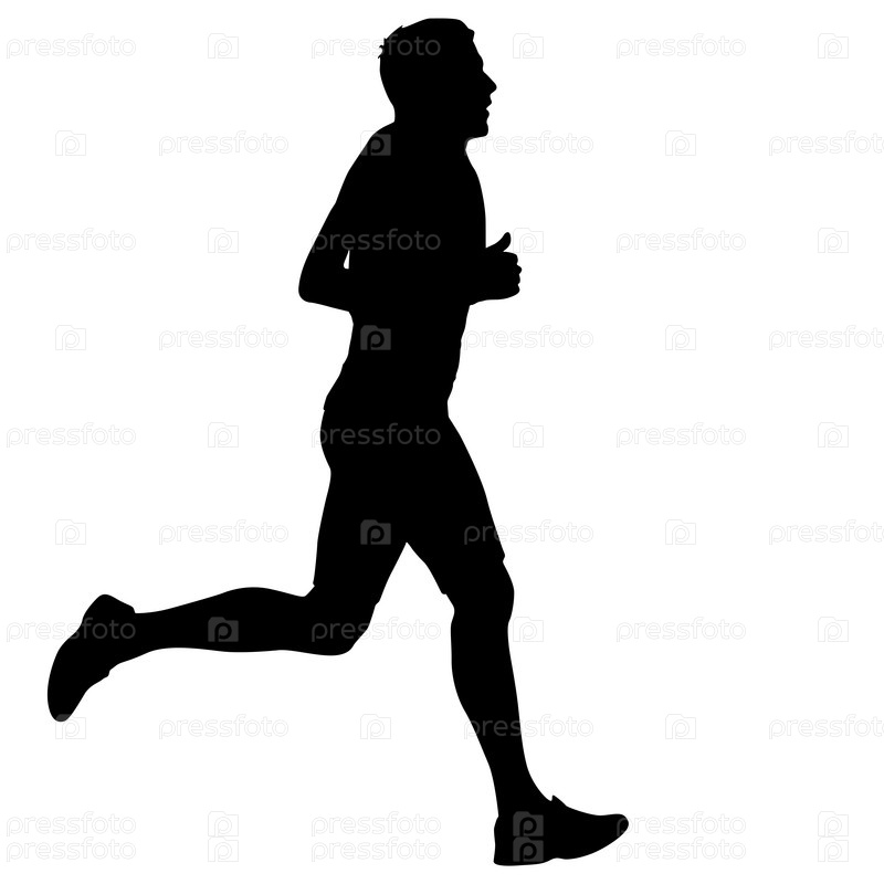 Черные силуэты бегунов на белом фоне
