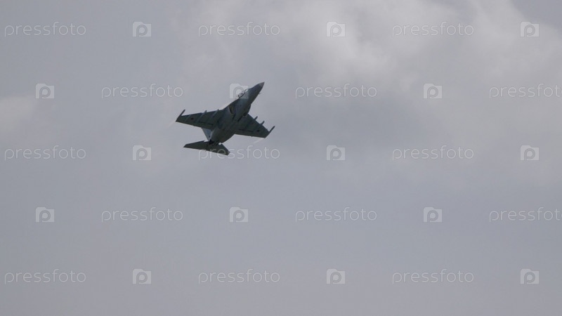 Москва Россия Аэродром Жуковский 25 июля 2021 года: пилотажный Як-130 выполняет демонстрационный полет международного аэрокосмического салона МАКС-2021