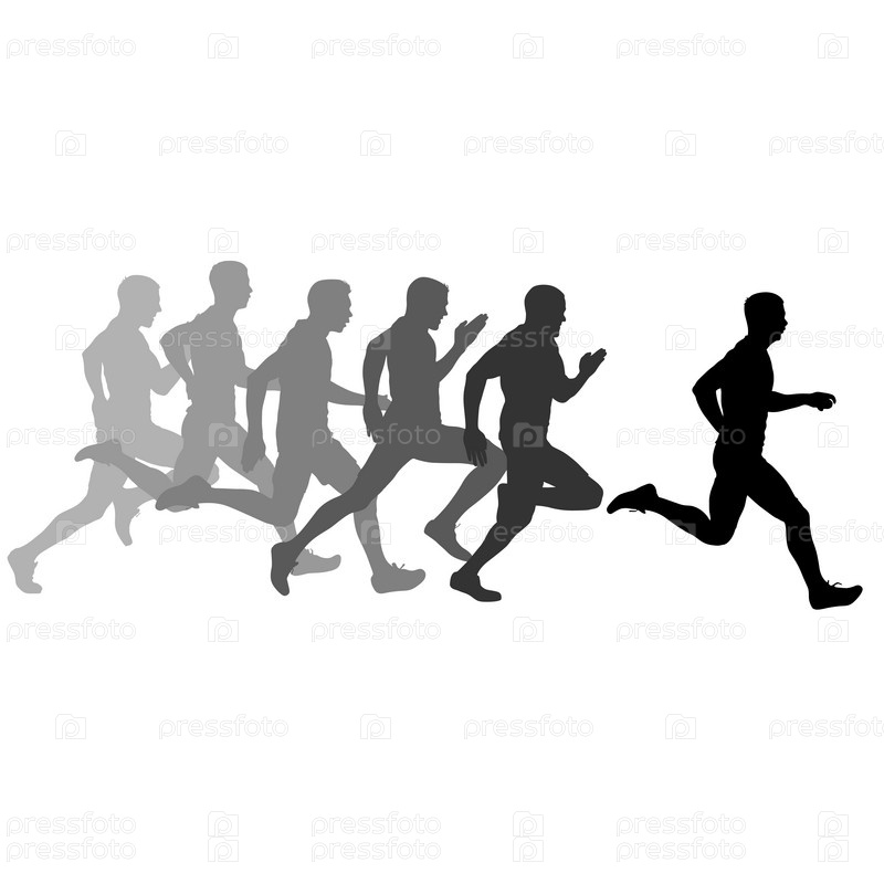 Набор силуэтов бегунов спринтерских мужчин на белом фоне