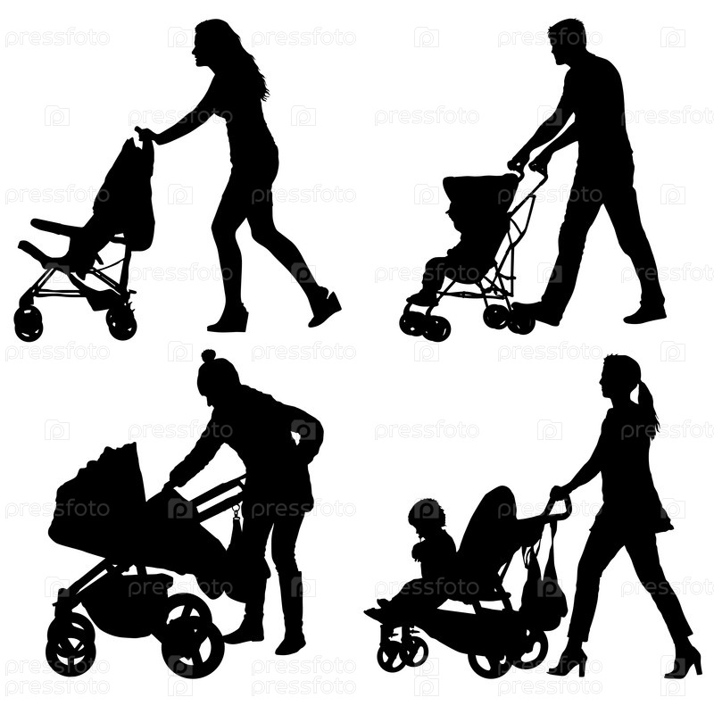 Набор силуэтов прогулок матерей с детскими колясками