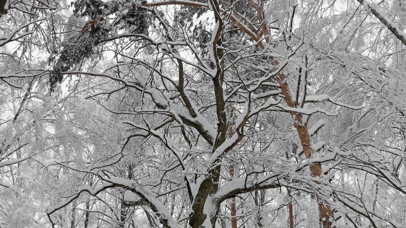 Зимний лес во время снегопада, замедленная съемка, Зимний лес во время снегопада, замедленная съемка