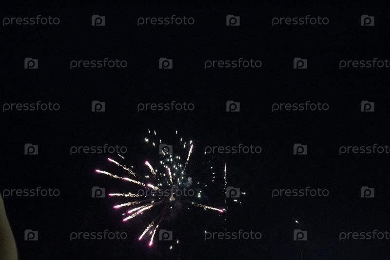 Фейерверк салют белый на черном темном фоне начало вспышки