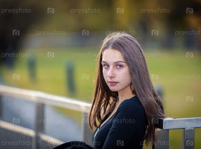 Девушка позирует на мосту в городском парке