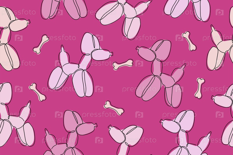 Классическая собачка из шариков. Векторный бесшовный рисунок милого мультяшного пузырькового животного в цвете. Элемент дизайна логотипа, открытки, принта на футболке, приглашения, аксессуаров. Векторная иллюстрация