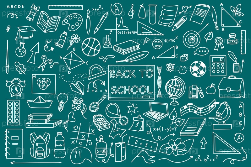 Фон школьных икон в стиле каракулей. Школьное образование. Снова в школу рисунок каракулей. Векторная иллюстрация