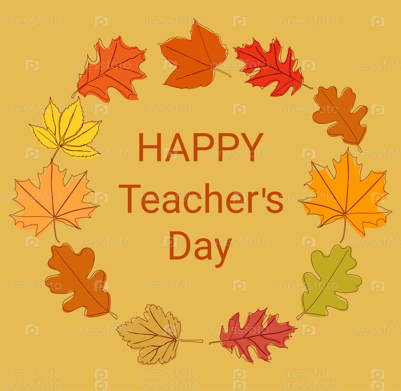 Векторная открытка с Днем учителя с надписями. Дизайн поздравительной открытки, макета, логотипа, марки или баннера ко Дню учителя