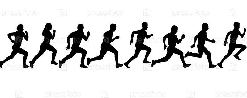 Набор силуэтов. Бегуны на спринте мужчины и женщины