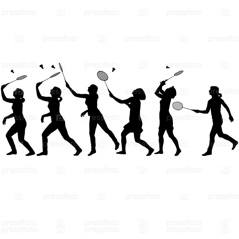 Черный силуэт бадминтонистки на белом фоне