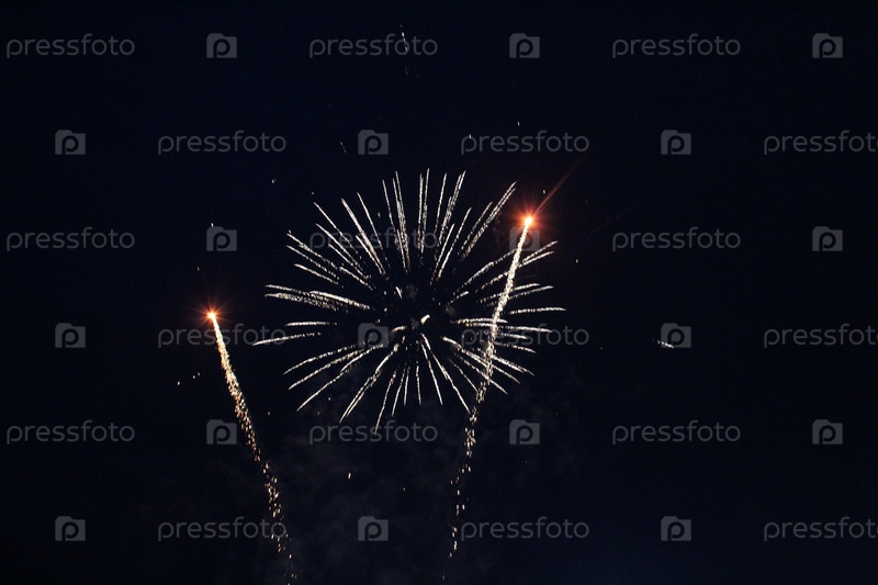 Фейерверк, салют, белые вспышки, огни розового цвета на темно-черном фоне. Праздничная атмосфера Новый Год Рождество День Независимости