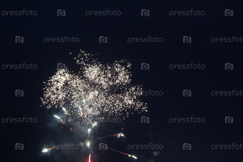 Фейерверк салют белый на темно-черном фоне вспышки цветов