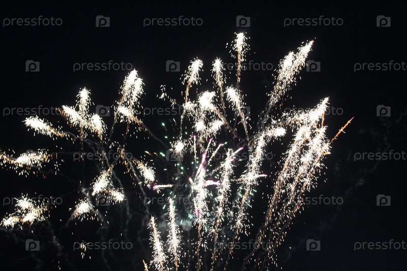 Фейерверки белые на темно-черном фоне. Праздничная атмосфера Рождество Новый год День независимости